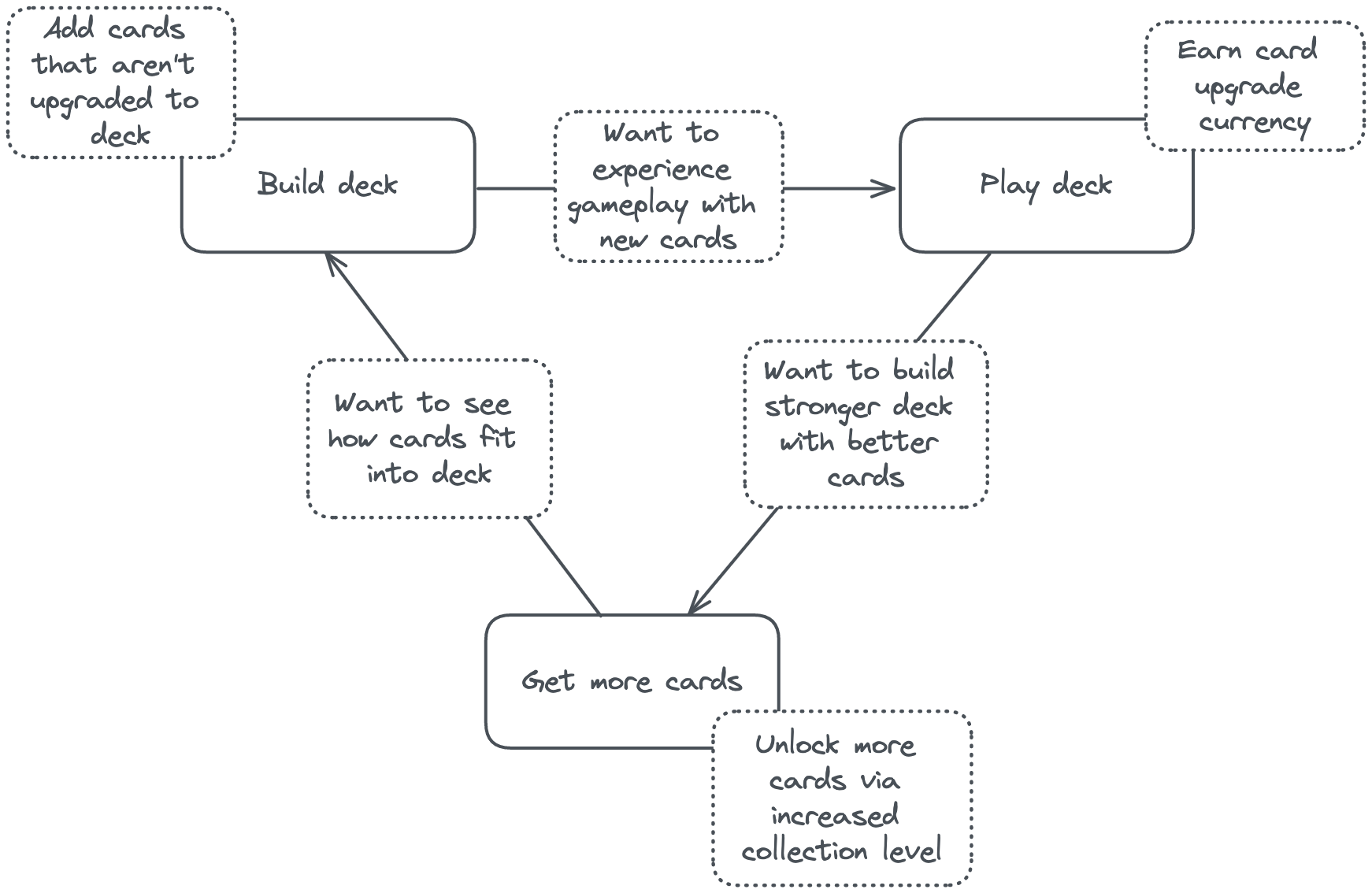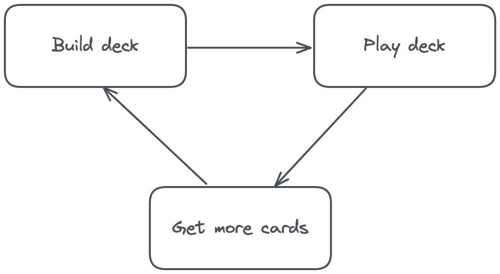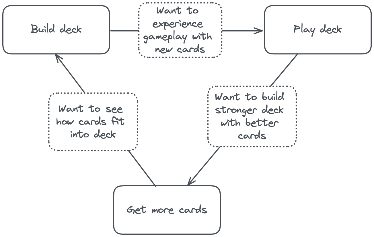 The monetization also sits on top of this loop. Cards variants and upgrades can be purchased to increase collection level (which unlocks more cards). Crucially, the monetization only directly affects this one step in the loop.