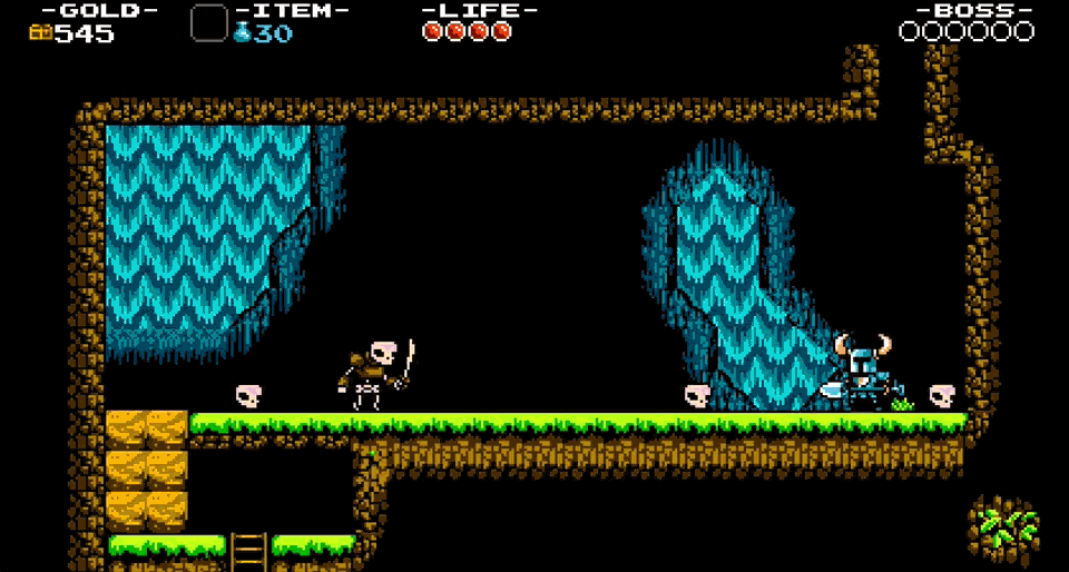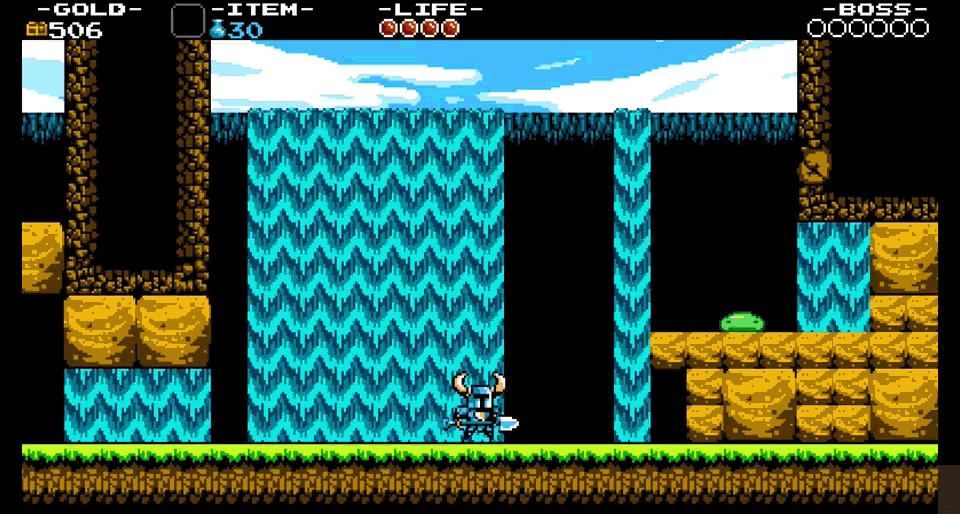 So in the first level we saw seven enemies and one boss type introduced. These hazards and enemies help introduce the mechanics Shovel Knight is built around — running, jumping, digging, and down-attacking.