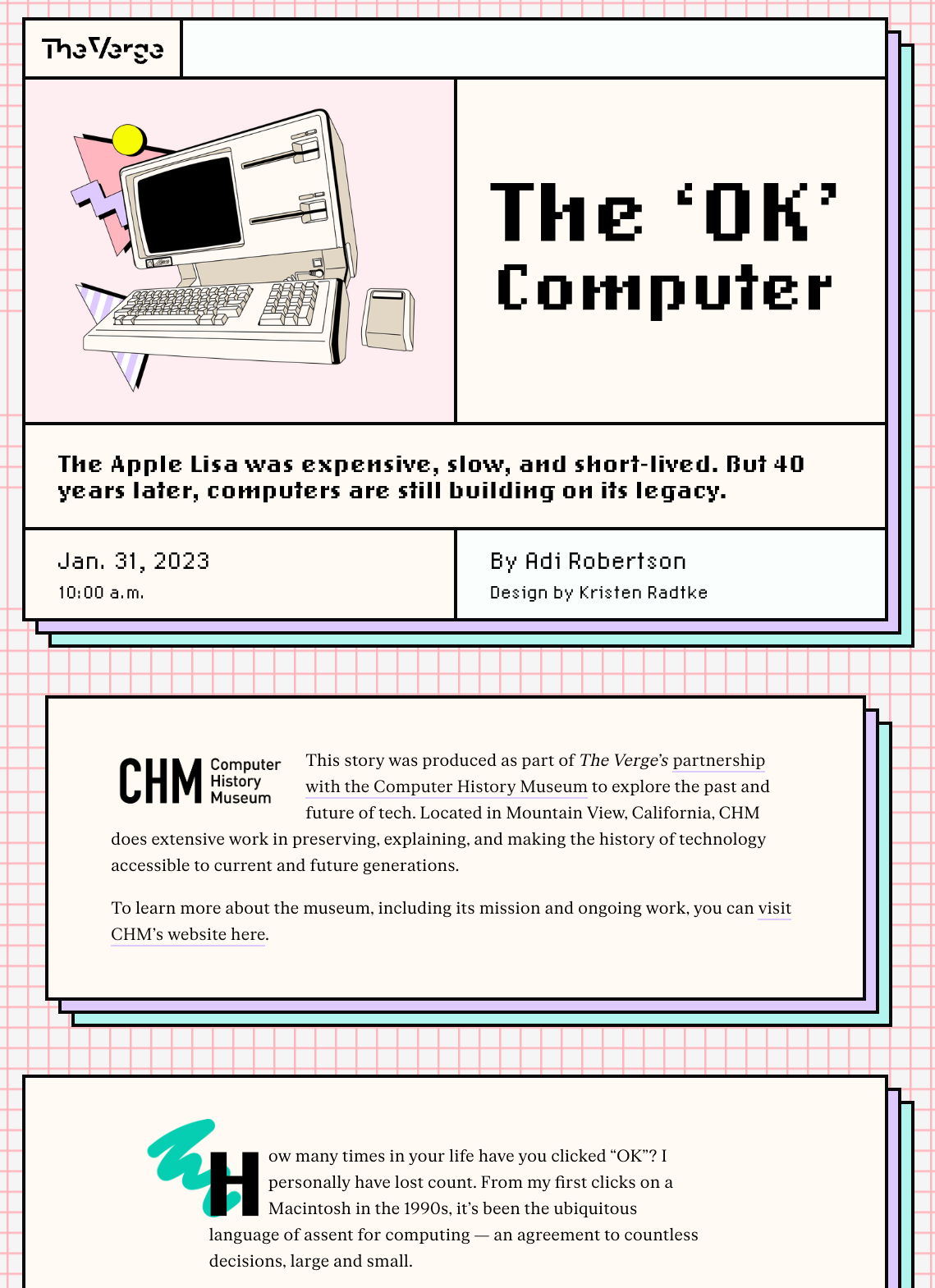 Berkeley Graphics harkening to "computer programs for professionals", The Verge looking back at the Apple Lisa, and Fuzzoscope looking back at a time when people would record cassette tapes of beats and raps.